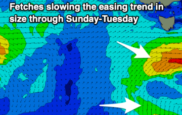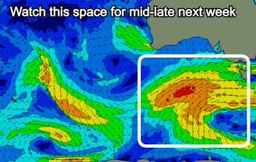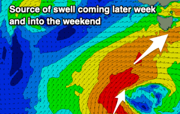 Fresh northerly winds will greet an easing swell this weekend ahead of building surf from Tuesday next week.